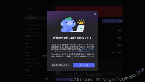 でも「Discordがメールアドレスの変更を依頼することはありません」と言いながら下に「危険性を理解した上で…」とかあるのはダメなんちゃうか!?w